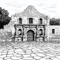 Enchanting Watercolor Depiction of the Historic Alamo Mission