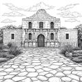 Captivating Line Art of the Historic Alamo in San Antonio, Texas