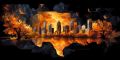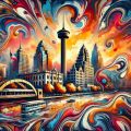 Vibrant Neo-Expressionist Marbling of San Antonio Cityscape