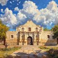 Historic Alamo Under a Canvas of Sunlit Clouds in San Antonio