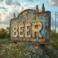 Rustic Charm of an Old Beer Sign under Texan Skies