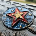 Detailed Close-Up of a Vintage KNOC Badge on Textured Surface