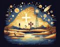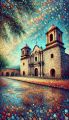Stylized Art of San Antonio Missions Under Starry Night Sky