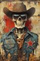 Enigmatic Cowboy Skeleton in Rustic Texan Attire on Canvas