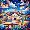 Enchanting Stylized Vision of San Antonio, Texas - A Canvas Masterpiece