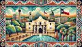 Vibrant Folk Art Depiction of San Antonio's Iconic Alamo and River Walk