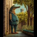 The Pensive Alligator in Suit: A Surreal Encounter in San Antonio