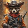 "Rugged Frontier Guardian: An Artistic Raccoon in a Wild West Setting"