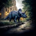 Majestic Triceratops Roams the Twilight Streets of San Antonio