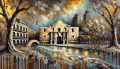 Vibrant Impressionistic Rendering of San Antonio’s Historic Alamo