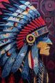 Vibrant Canvas Art of Native American Chief in Traditional Headdress