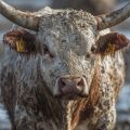Majestic Longhorn Bull Stares Intently in Natural Habitat