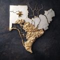 Luxurious Gold and White Relief Map of Texas on Dark Background