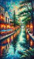 Geometrically Reimagined San Antonio River Walk on Canvas