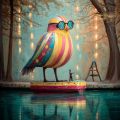 Enchanting Giant Bird and Painter on a Boat: A Surreal Vision