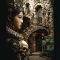 Mysterious Woman with Skull in Gothic San Antonio Night Scene