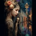 Cyberpunk Vision of San Antonio River Walk with Surreal Elements