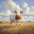 Majestic Longhorn Against Bold Texan Sunset on Canvas