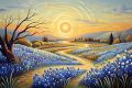 Enchanting Sunset Over a Bluebonnet-Filled Landscape in Texas