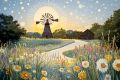 Enchanting Summer Meadow with Vintage Windmill in San Antonio, TX