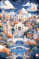 Vibrant Canvas Depiction of San Antonio's Historic Waterfront and Architecture