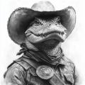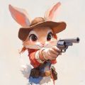 Whimsical Western Rabbit with a Revolver in a Straw Hat