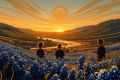 Tranquil Sunset Over Bluebonnet Fields in a Mountainous Landscape