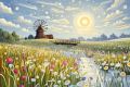 Vibrant Sunset Over Floral Fields Enhanced by Artful Rendering