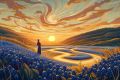 Serene Sunrise Over Bluebonnet-Covered Hills in San Antonio, TX