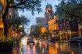Rainy Evening in Downtown San Antonio: A Canvas of Urban Lights