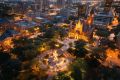 Twilight Glow Over San Antonio's Historic Cathedral and Lively Plaza