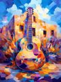 Vibrant Guitar Amidst Colorful Abstract San Antonio Landscape