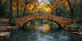 Serene Dawn Over Meadow Bridge with Grazing Deer Artwork