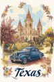 Vintage Car and Historic Cathedral in Autumnal San Antonio