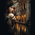Enigmatic Beauty Holds a Skull by a Historic San Antonio Canal