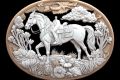 Majestic Horse and Rider Sculpture in a Floral Oval Frame