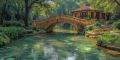 A Serene Escape: Rustic Bridge and Cottage by a Tranquil River