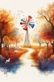 Vibrant Watercolor of Texan Windmill Blanketed in Patriotic Hues