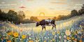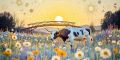 Enchanted Sunset Over Wildflower Meadow With Majestic Cow in Texas