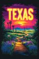 Vintage Style Illustration of a Texas Desert Landscape with Cacti