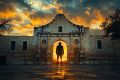 Silhouette of a Cowboy at The Alamo during a Vibrant Sunset