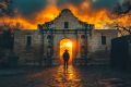 A Lone Cowboy Silhouetted Against a Fiery Sunset at The Alamo