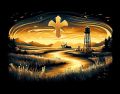 Golden Sunset Over Iconic Texas Symbols: Cross, Oil Rig, and Nature