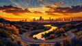 Vibrant Sunset Over San Antonio's Skyline and Windy River