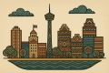San Antonio Skyline, a Stylized Artistic Representation in Vibrant Colors