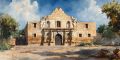 Rustic Elegance of the Historic Alamo in a Sunlit Watercolor