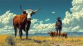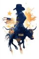 Iconic Texan Pride: Cowboy and Longhorn Against a Patriotic Backdrop