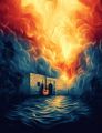 Surreal Sanctuary Amidst Fiery Skies and Calm Waters