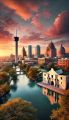 Vibrant Sunset Over San Antonio: A Stylized Cityscape Canvas