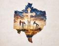 Stylized Texas Silhouette with Oil Rigs and Giant Cross at Sunset